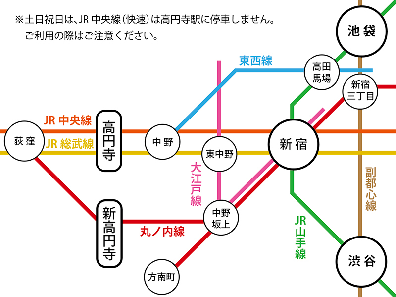 JR中央線、JR総武線、東京メトロ東西線「高円寺」駅