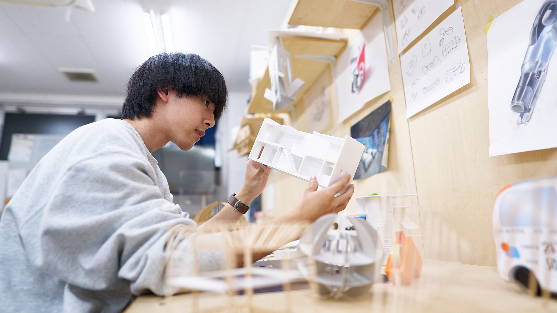 1年次の前期はクラス制の共通基礎科目でクリエイティブの基礎を学び、後期から専門基礎を選択