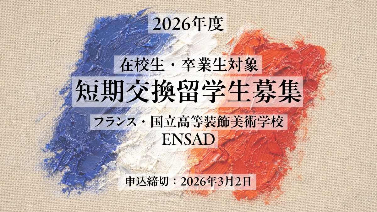 アサビでは、在校生・卒業生を対象とした、フランス国立高等装飾美術学校 L’ Ecole Nationale Supérieure des Arts Décoratifs(ENSAD) への短期交換留学の申し込みを募集しております。