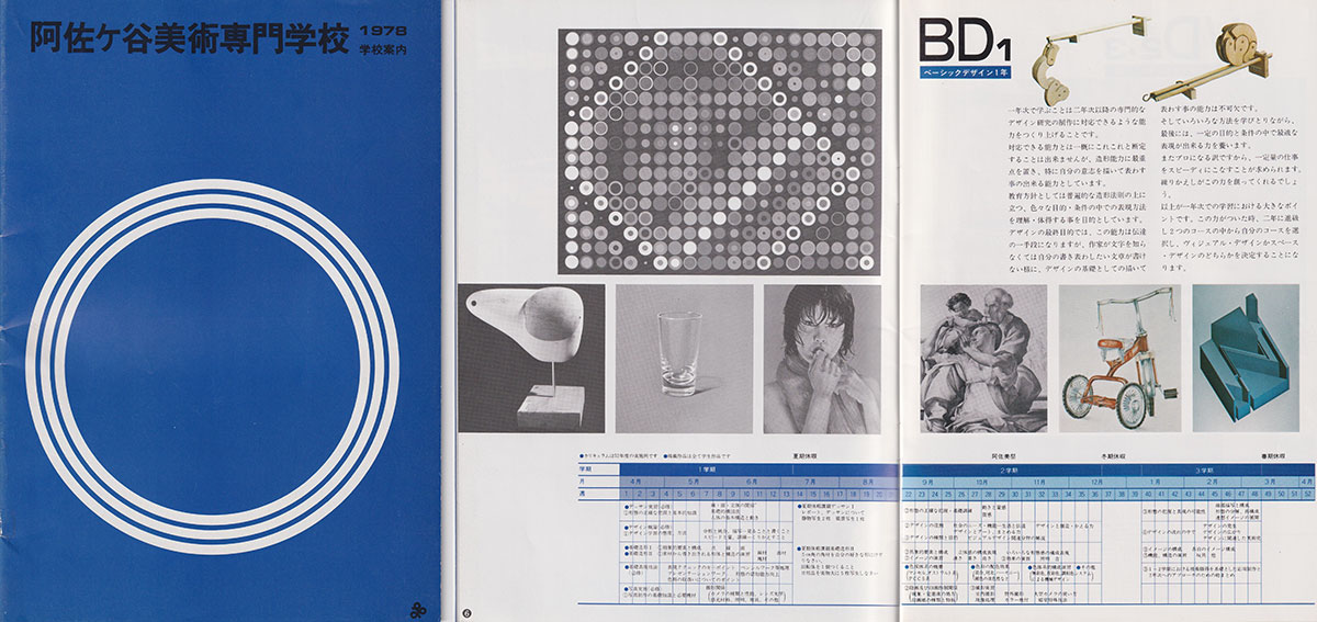 当時のデザイン科では、1年次に全員が「ベーシックデザイン」を学び、2年次からビジュアルデザインコースまたはスペースデザインコースを選択するカリキュラムでした。この基礎教育を重視する方針は美術学園時代から継承され、現在の全学科共通の「基礎学年制度」として受け継がれています。