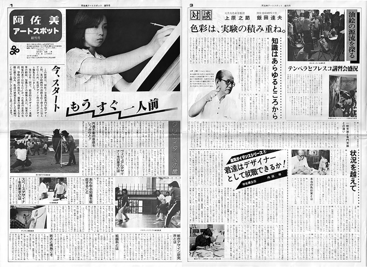 また、専門学校化の1977年には、学生編集による学校新聞『阿佐美アートスポット』が創刊されています。発刊号の編集後記には「今はただ溜まっている課題を片付けるのだ」という学生の一文が残されており、そこには当時も今も変わらぬ学生の姿がありました。