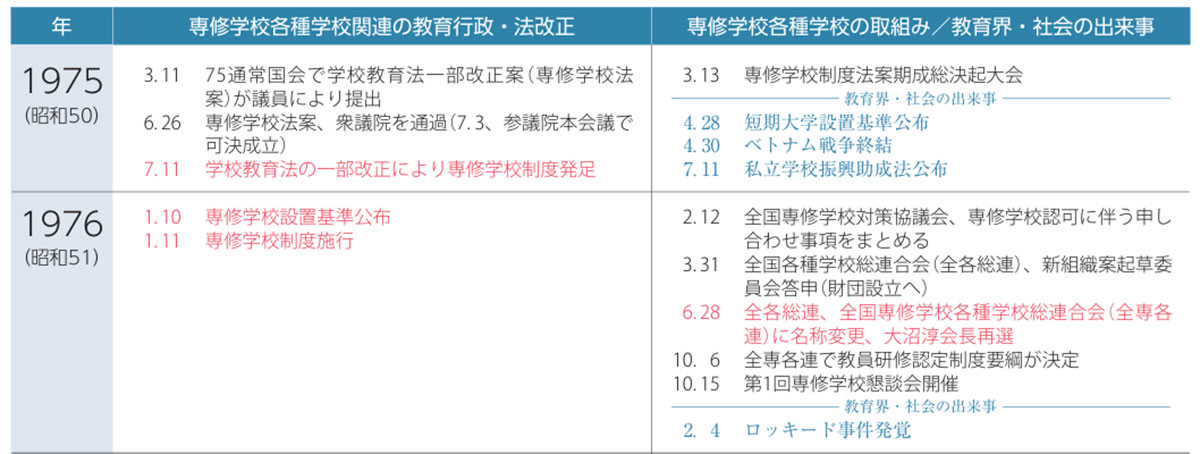 学校教育法による「専門学校」は、1976年に専修学校の専門課程として制度化されました。