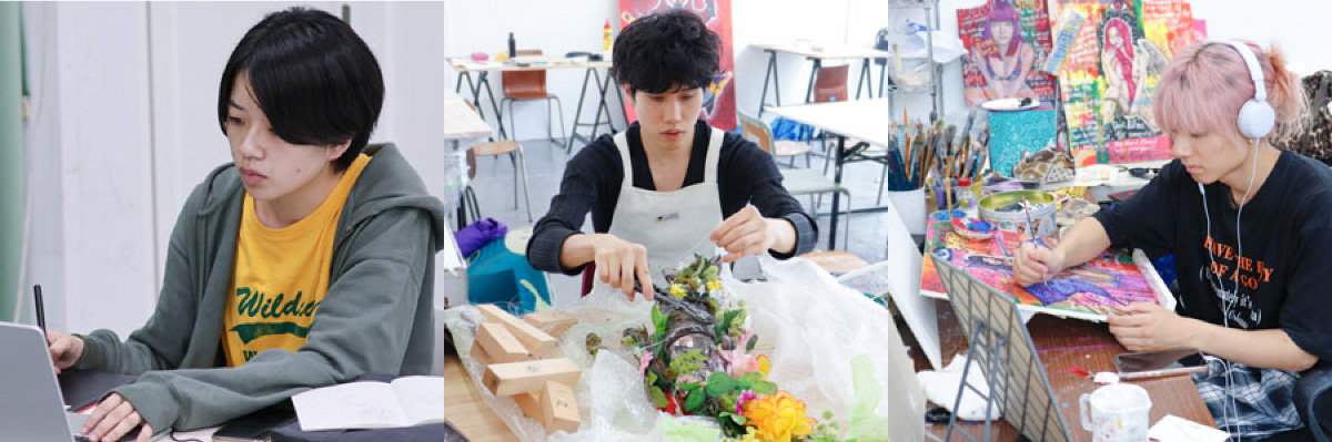 本校以外の専門学校・大学・短大で1年以上、または高等専門学校で4年以上修了した方は、2年次編入に応募できます。ポートフォリオまたは本人の作品を3点ほど持参してください。作品ジャンルは問いません。面接は希望する学科・コースを対象に実施されます。