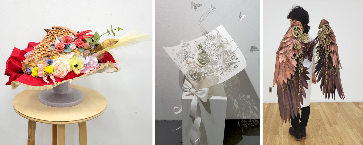 右:2年次修了制作 画用紙を金属に見立て制作した翼