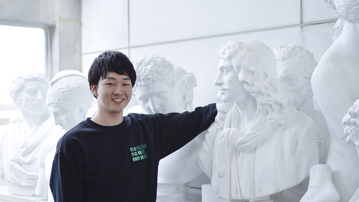 タイポグラフィなど初めて習うことも多く、視覚デザインの授業は楽しいです。それと、今までデッサンをやったことが無かったので、学術造形課目でデッサンが選択できたのも良かったです。