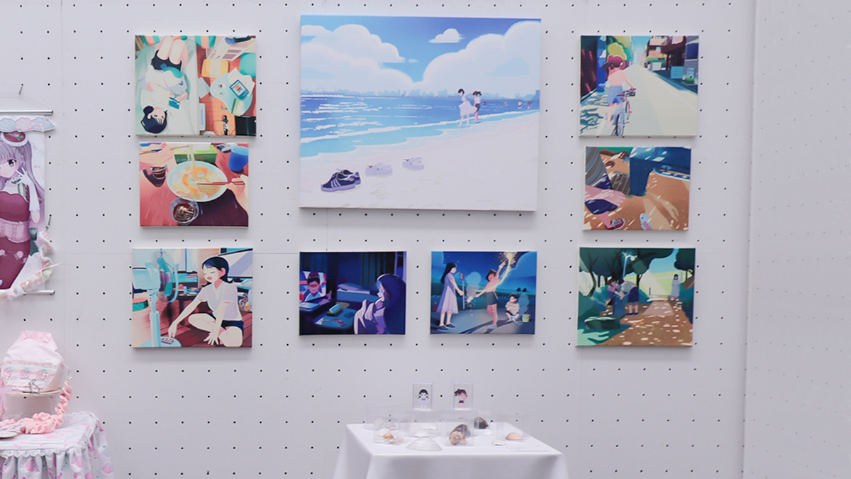 会場では3年生の卒業制作および研究科の修了制作を展示。アサビ校内での教室展示とは異なり、同じ空間に多彩な分野の作品が並ぶことで、領域を越えて響き合う構成となり、見応えのある展示風景が広がりました。